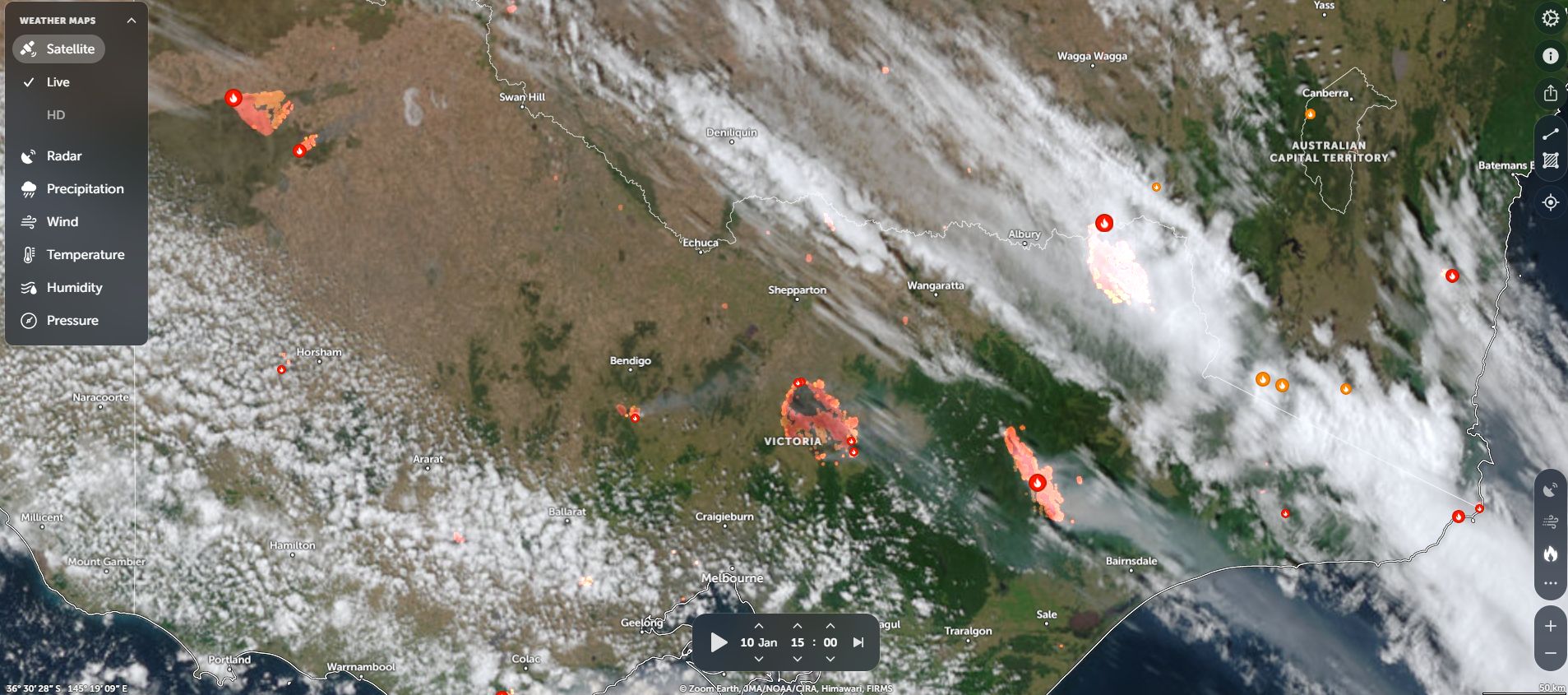 I have attached some images from Zoom Earth to show the fires burning across the state and the true scale of these can clearly be seen.