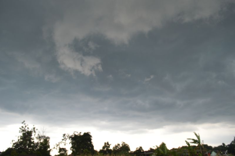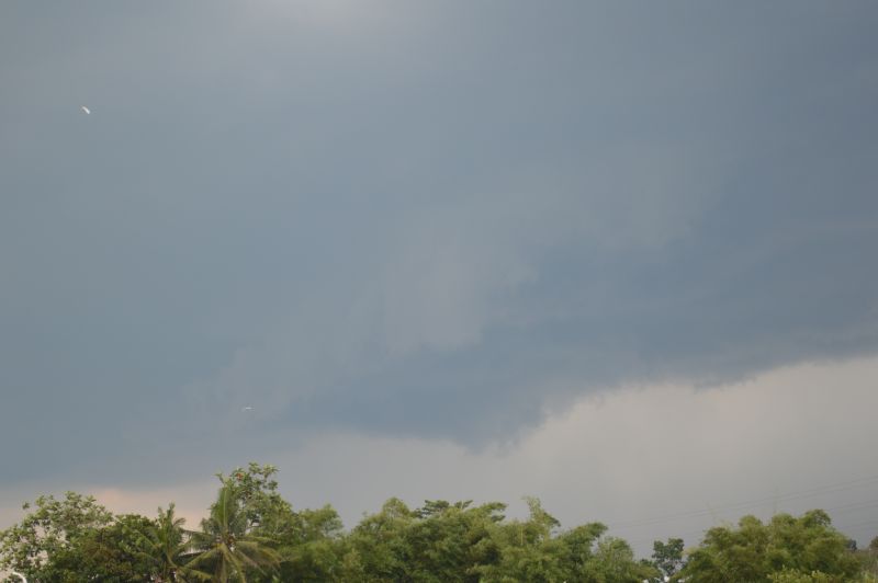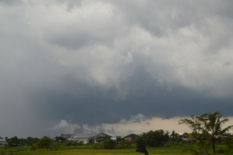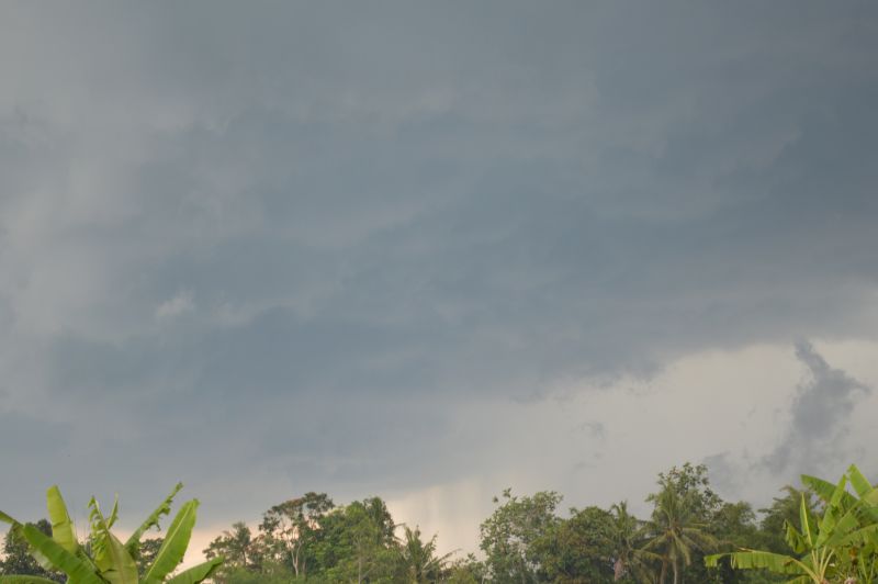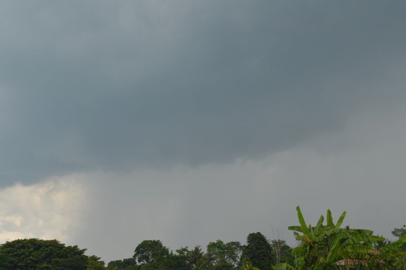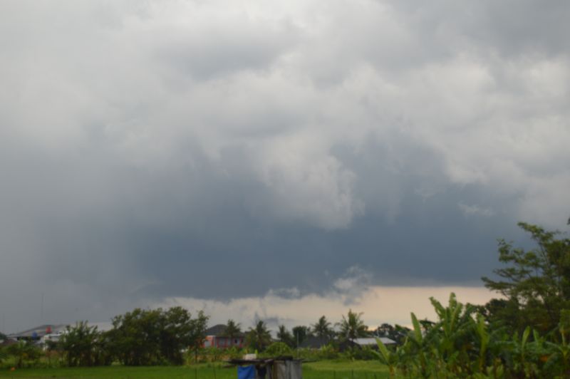 Following a humid morning, a thunderstorm developed on the southern side of Merapi that tracked southeast over northern Yogyakarta. The storm produced an interesting base and very intense rainfall when underneath it.