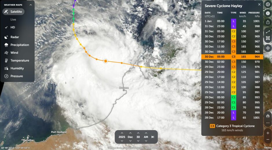 While I was in Indonesia, I became aware of a tropical cyclone named as “Hayley” which formed from a cluster of thunderstorms during the 28 December approximately 700 km north northwest of Broome. The storm made landfall on the Dampier Peninsula north of Broome (Western Australia) on the 31 December 2025.