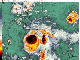 Hurricane Matthew continues it's slow movement north towards the western portions of Haiti. The storm is moving at 9 km/h northwards as a powerful Category 4 storm sustaining winds of 120 knots at the core with higher gusts to 140 knots (Approximately 220 km/h with higher gusts to 260 km/h).
