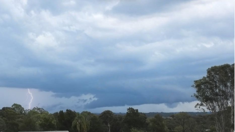 There was also another thunderstorm cell to the north and one more to the southeast but closer to the coast. Of interest was a developing base to the west of that weakening storm cell (Now west of Wollongong) and a number of photos were taken.