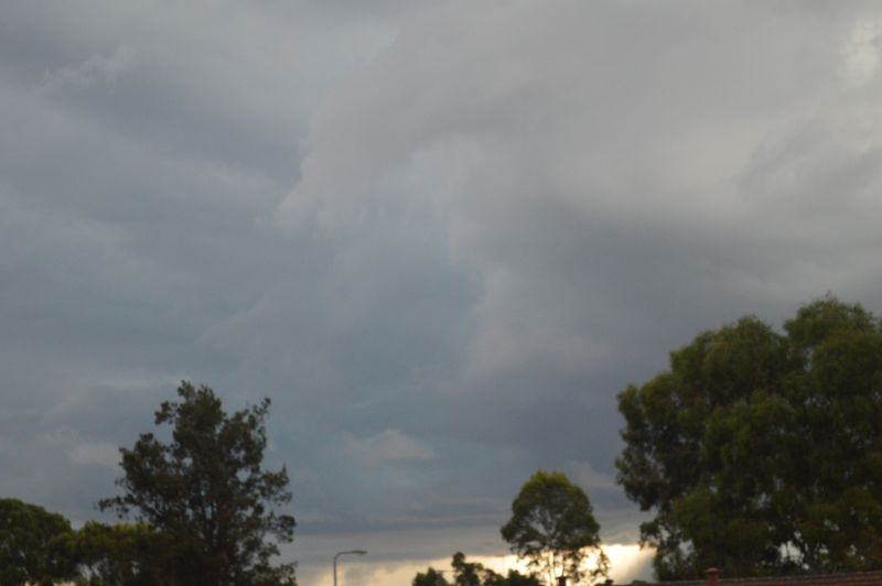 I was observing a green tinge within the base and when I saw this plus some interesting cloud structure, I launched a local storm chase west towards Penrith.