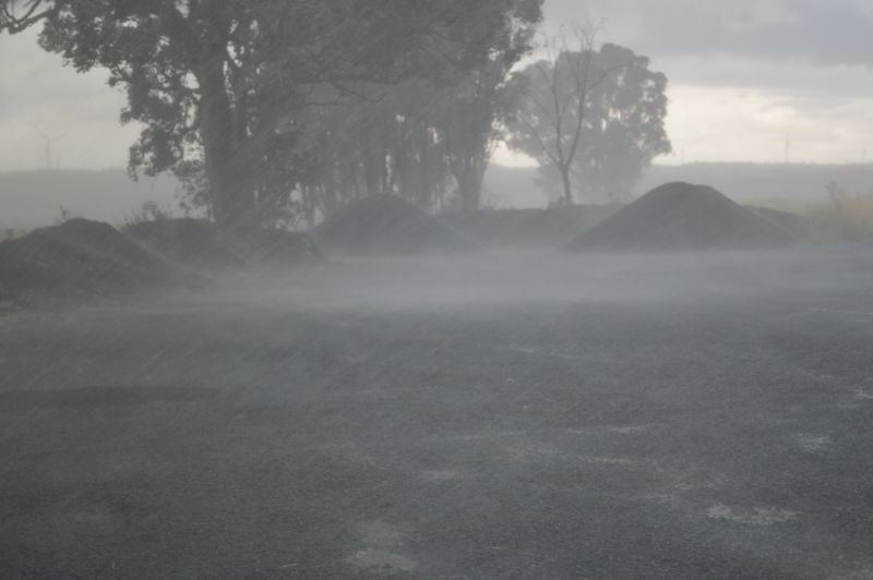 As I was driving into town, I encountered intense wind, some very large raindrops and a fresh hail core. While the hail, was in the order of 1 to 2 cm in size, this was driven by intense southeast winds. A reasonable amount of hail fell. This was followed by intense rain and potentially damaging wind.