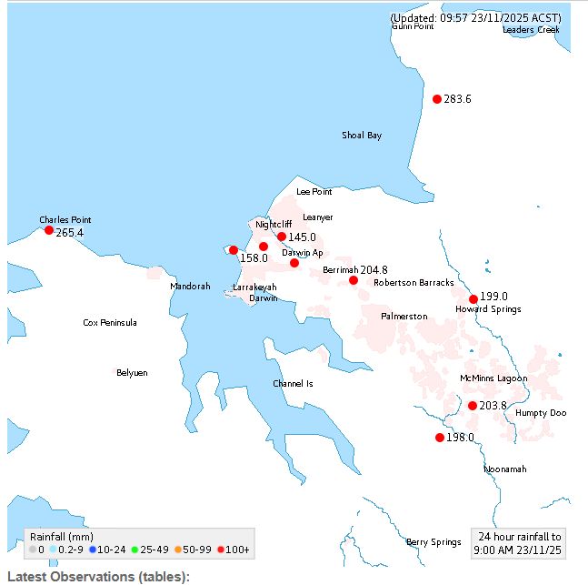 However, it has left its mark with some incredible rainfall totals for November and far in excess of what the average monthly totals that would be expected. The following is identified to 9 am Sunday morning (Northern Territory time):