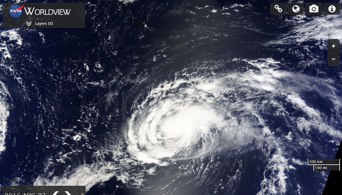 NASA Worldview of the storm with overlays acquired 27/8/2016.