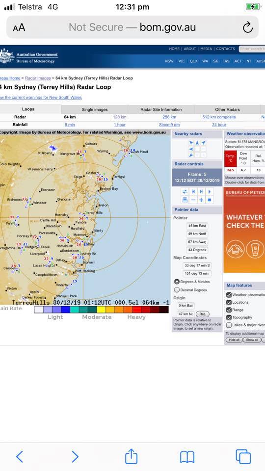 Interesting to see how shallow the moisture is or trajectory of the drier air and mixing. Mangrove Mountain at a few hundred metres is at 35C and dew point 6.7C - Penrith 33C dew point 16.8C - no wonder I am sweating!